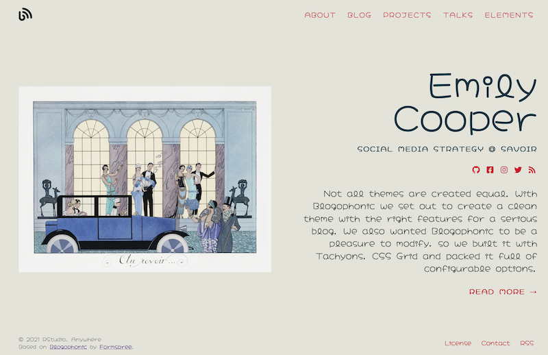 Hugo Apéro includes 6 embedded fonts that work “out of the box.” We selected 3 serif and 3 sans-serif options that we thought looked good with this theme, in our humble opinions. All embedded fonts include real italics so you may emphasize to your heart’s content ❤️! How to choose?