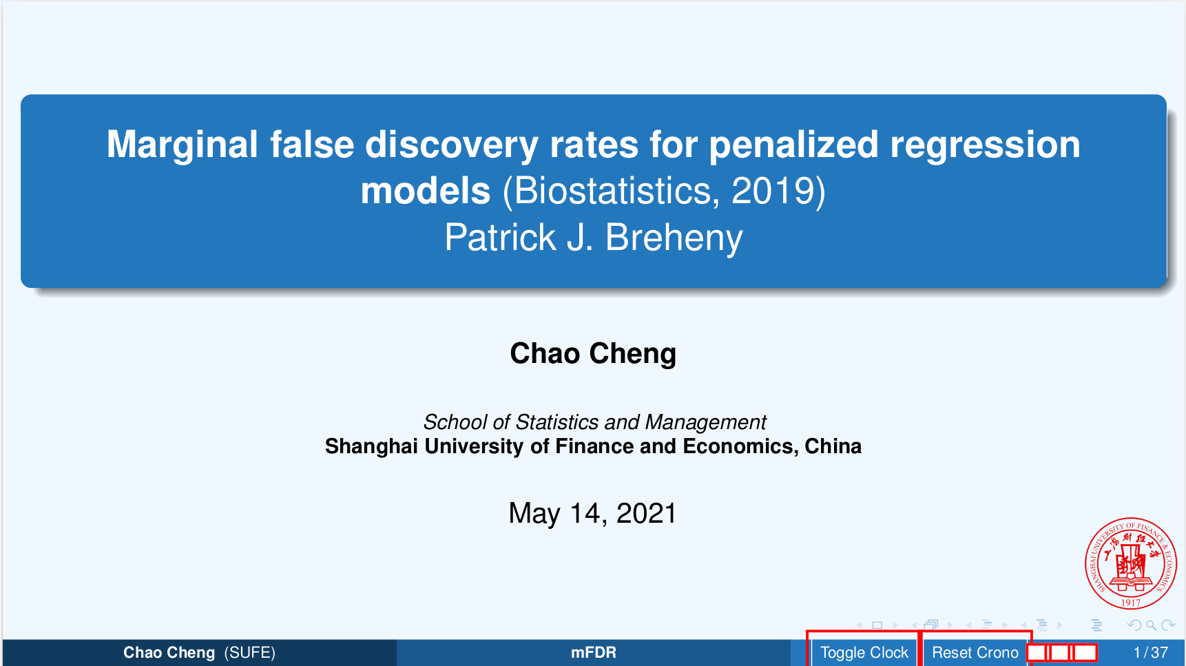 In this group seminar, I will talk about the concept of Marginal False Discovery Rates(mFDR) based on the paper “Marginal false discovery rates for penalized regression models” by Patrick Breheny.