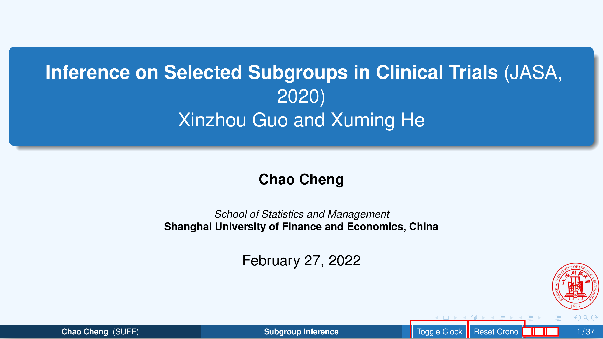 In this group seminar, I will talk about how to perform inference on selected subgroups based on the paper by Xinzhou Guo and Xuming He.
